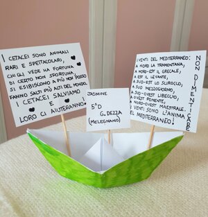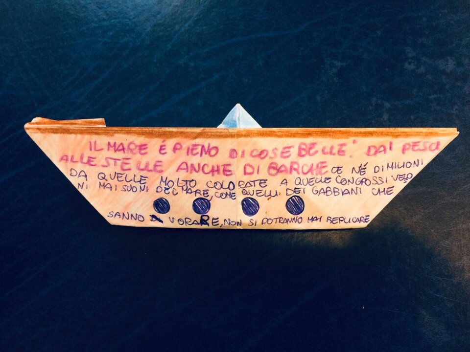 Questa meravigliosa flotta colorata è stata costruita dai bambini e dalle bambine delle scuole elementari di Melegnano nelle settimane, diventate poi mesi, del lockdown. I nostri piccoli marinai ( ormai diventati armatori in proprio) stavano partecipando al progetto A VELE SPIEGATE quando abbiamo dovuto sospendere le lezioni. Allora è nata l'idea: perché non ci mandate una piccola barca di carta? Magari con un disegno, un pensiero. E così è stato, dai cantieri casalinghi sono uscite tante barche e tanti pensieri sul mare. Li potete leggere qui.